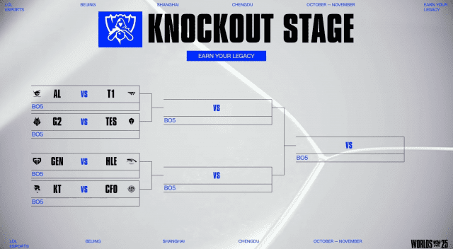 '2025 리그 오브 레전드(LoL) 월드 챔피언십(롤드컵, 이하 월즈)' 녹아웃 스테이지 8강 대진이 확정됐다.
