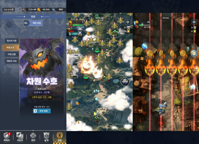 다채로운 콘텐츠는 반복 플레이의 지루함을 덜어낸다. 기본 스테이지 외에도 재화 파밍을 위한 던전 콘텐츠가 4종류로 나뉘어 있어 각기 다른 재미를 제공한다. 특히 날아오는 메테오를 스치듯 피하며 재화를 획득하는 '메테오 러쉬' 모드는 정교한 컨트롤이 주는 쾌감을 극대화했다.