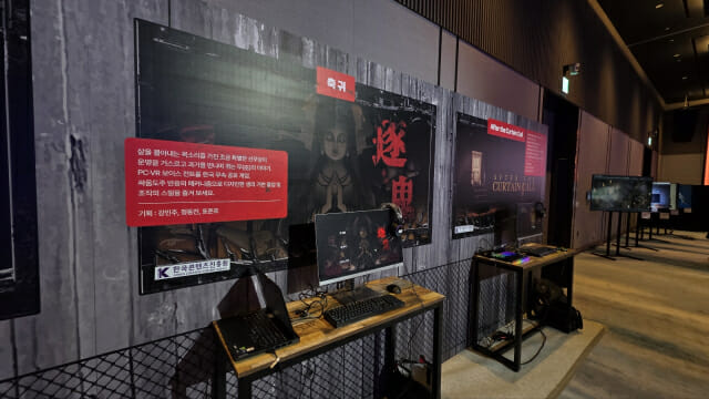 한국 무속 공포를 다룬 '축귀'는 음성 컨트롤이라는 독특한 조작 방식을 도입해 눈길을 끌었다. 표준호 개발자는 "신체 능력 향상이나 긴장 완화 등 소리를 지를 때 느끼는 감정을 게임 내 시스템으로 구현하고 싶었다"고 개발 배경을 설명했다.
