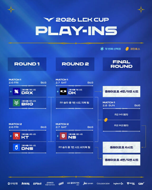 6일 열리는 1라운드에는 DRX와 브리온, KT 롤스터와 DN 수퍼스가 출전하며 3전 2선승제로 진행된다. 패배한 두 팀은 LCK컵 여정을 마무리하기에 '단두대 매치'라고 할 수 있다.