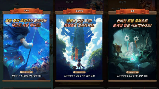 출시일 기준 하루가 지난 현재는 최대 3명의 조련사까지 공개돼 총 12기로 덱 구성이 가능하다. 서버 최강을 가리는 '천공의 탑'과 대규모 속성 레이드 '강림전' 등 일부 콘텐츠는 특정 스테이지 및 일정에 따라 순차적으로 공개될 예정이다.