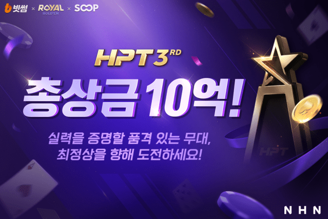 HPT는 한게임 로얄홀덤에서 홀덤 게임 실력을 겨루는 온라인 새틀라이트 토너먼트와 현장 개최 방식인 오프라인 토너먼트로 나뉘어 진행하는 홀덤 대회다. 빗썸이 주최사로 참여했으며, SOOP이 운영을 맡았다. 지난해 11월 한게임 로얄홀덤의 리뉴얼과 함께 한게임의 자체 브랜딩 오프라인 대회로 본격적인 막을 올렸다.