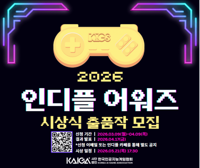 한국인공지능게임협회(이하 협회)는 국내 인디게임 개발자들의 우수한 작품을 발굴하고 창작 성과를 조명하기 위한 '2026 인디플 어워즈' 출품작을 모집한다고 10일 밝혔다.