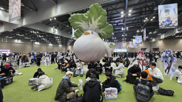 14일 경기도 일산에 위치한 킨텍스 제1전시장에 들어서자마자 가장 먼저 시선을 사로잡은 것은 부스 중앙에 자리 잡은 6m 크기의 초대형 '배추닭(키보)' 조형물이었다. 특유의 평화롭고 여유로운 게임 속 세계관을 오프라인 공간에 그대로 옮겨놓은 듯한 구성은 관람객들의 탄성을 자아냈다.