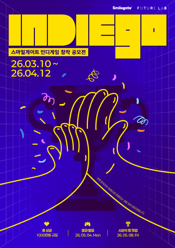 스마일게이트 퓨처랩(이사장 권혁빈)은 총상금 1000만원 규모 인디게임 창작 공모전 '인디고' 참가자를 모집한다고 19일 밝혔다.
