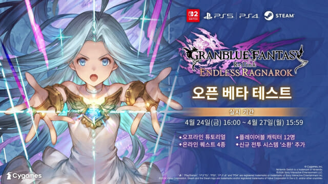 사이게임즈(대표 와타나베 코이치)는 신작 액션 RPG ‘그랑블루 판타지 리링크 – 엔드리스 라그나로크’의 오픈 베타 테스트를 실시한다고 17일 밝혔다.