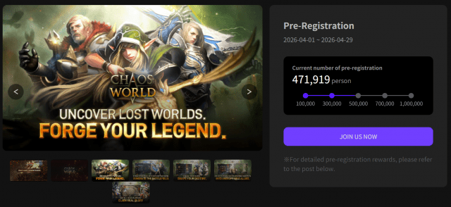 넥써쓰(대표 장현국)와 밸로프(대표 신재명)는 공동 퍼블리싱하는 모바일 MMORPG ‘카오스W’의 사전등록자 수가 47만 명을 돌파했다고 17일 밝혔다. '카오스W'는 2분기 중 출시된다.